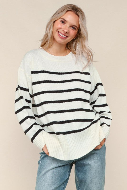 White And Black Striped Sweater Top